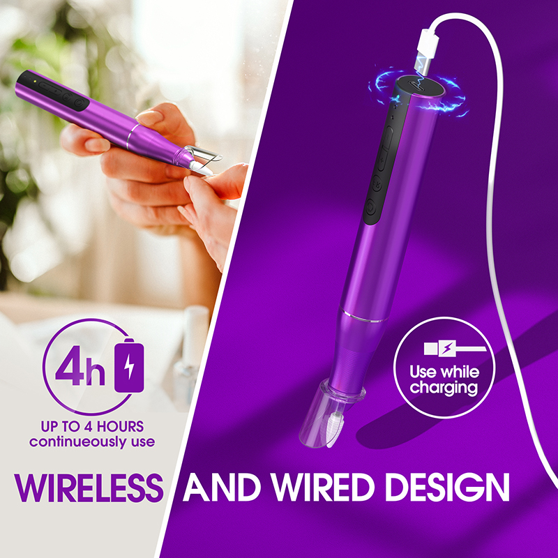 Bušilice za akrilne nokte dizajnirane su da budu lagane (85g) i mogu stati u vašu torbicu ili džep odjeće. Takođe dolazi sa USB kablom za punjenje koji se lako može priključiti na bilo koji USB uređaj radi punjenja, što vam čini pogodnim da uživate u njezi noktiju bilo kada i bilo gde.