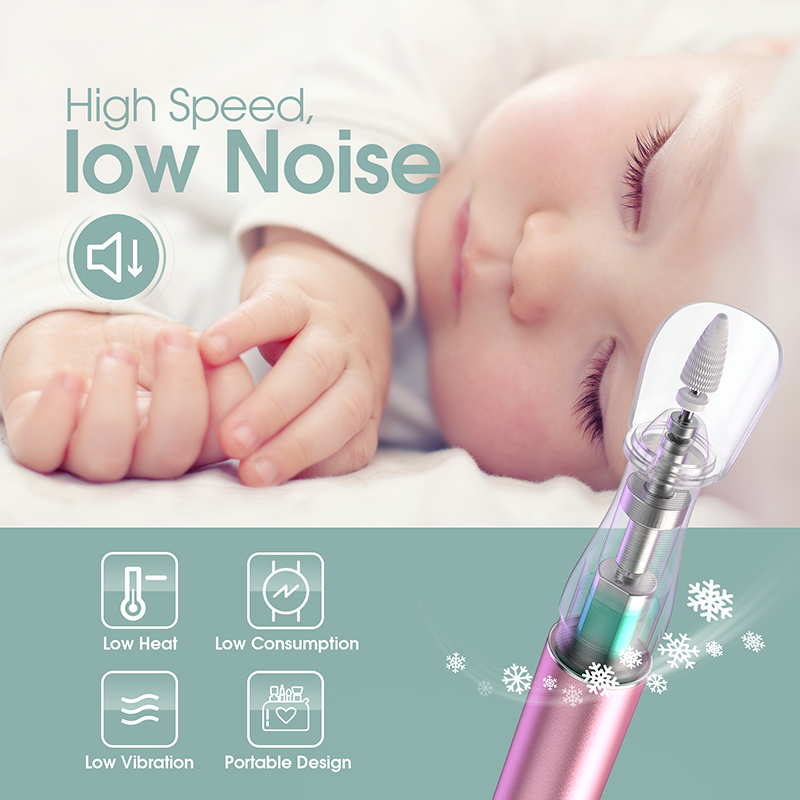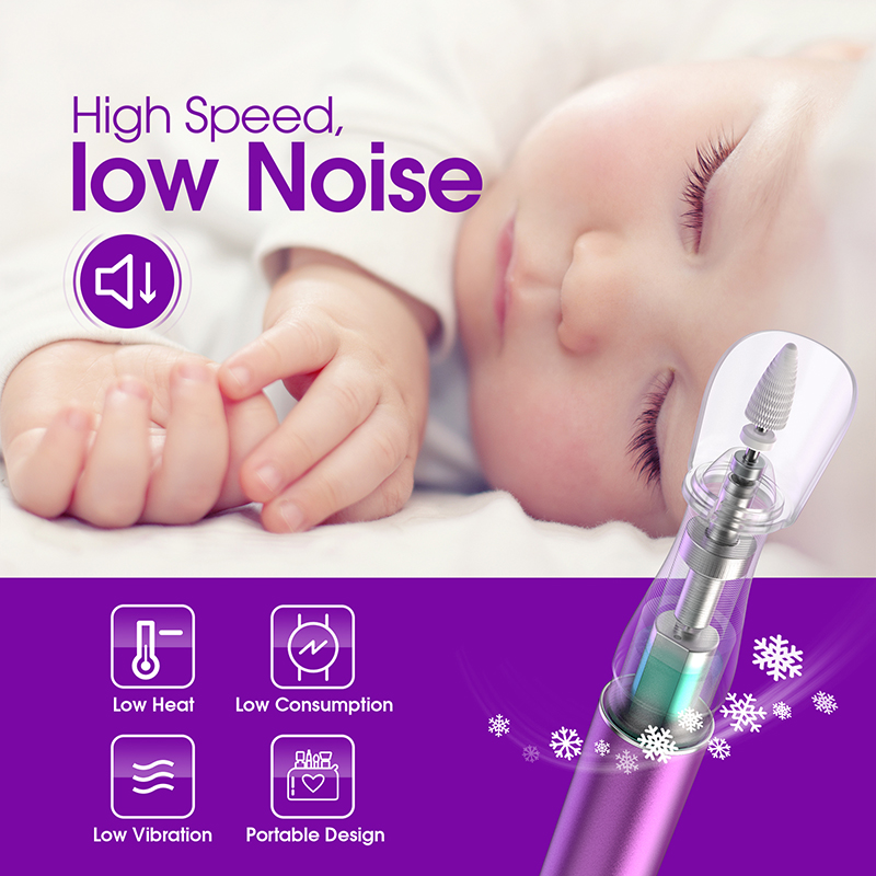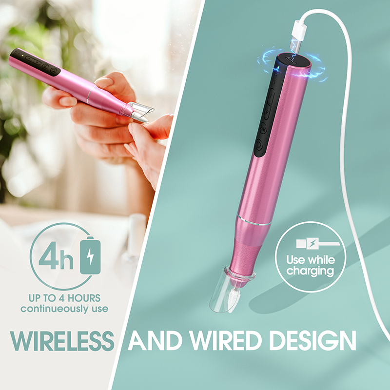 Ova električna bušilica za nokte ima najnovije aluminijumsko kućište sa antivibracionim dizajnom, koje može efikasno smanjiti buku i toplotu prilikom brušenja noktiju, osiguravajući da nikoga nećete ometati dok polirate nokte. Ergonomski izgled olovke čini udoban neklizajući hvat i omogućava vam da s lakoćom uklonite gel nokte.