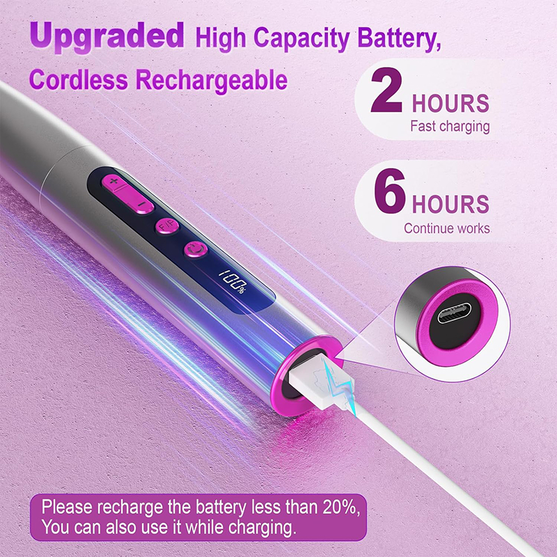 električna bušilica za nokte Nadograđena baterija velikog kapaciteta, 2 sata brzo punjenje i 6 sati nastavak rada. Električna turpija za nokte je pogodna za vaš USB adapter, laptop, mobilno napajanje itd. Ako je snaga bežične bušilice za nokte manja od 20%, možete je koristiti i dok se puni.