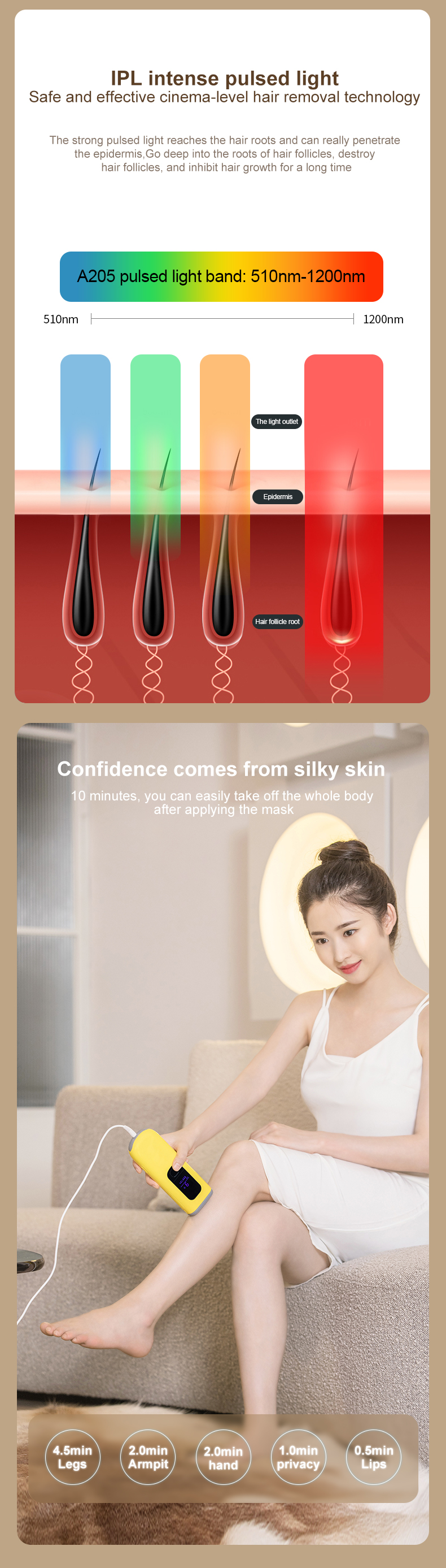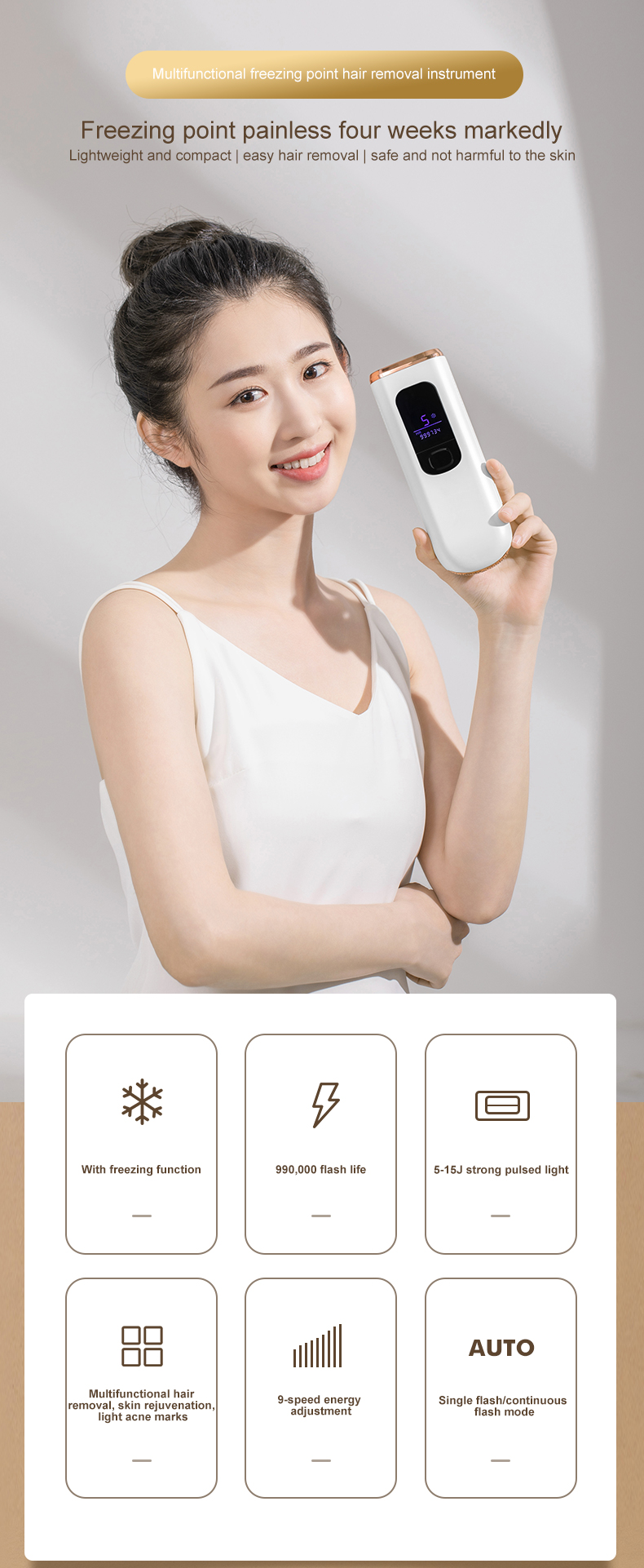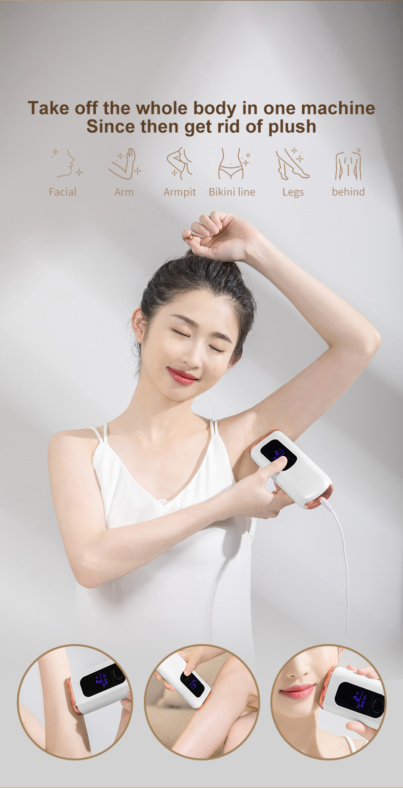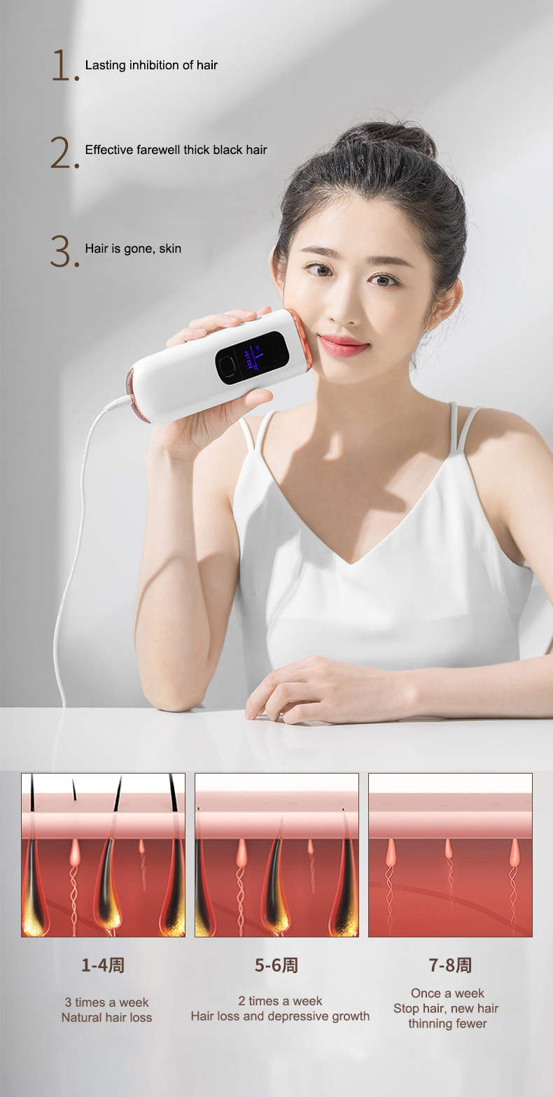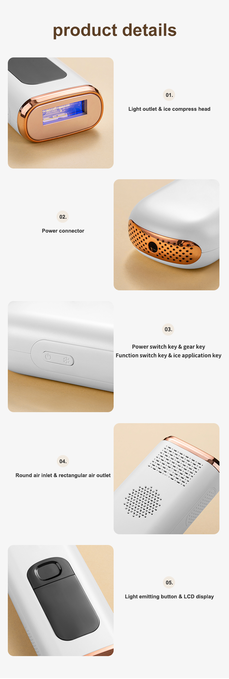 (Napomena: 1, Nije prikladno za tetoviranu i preplanulu kožu, ranjena područja i trudnice. 2, To je uređaj koji se može priključiti, molimo da uređaj uvijek bude priključen na napajanje tokom tretmana. )