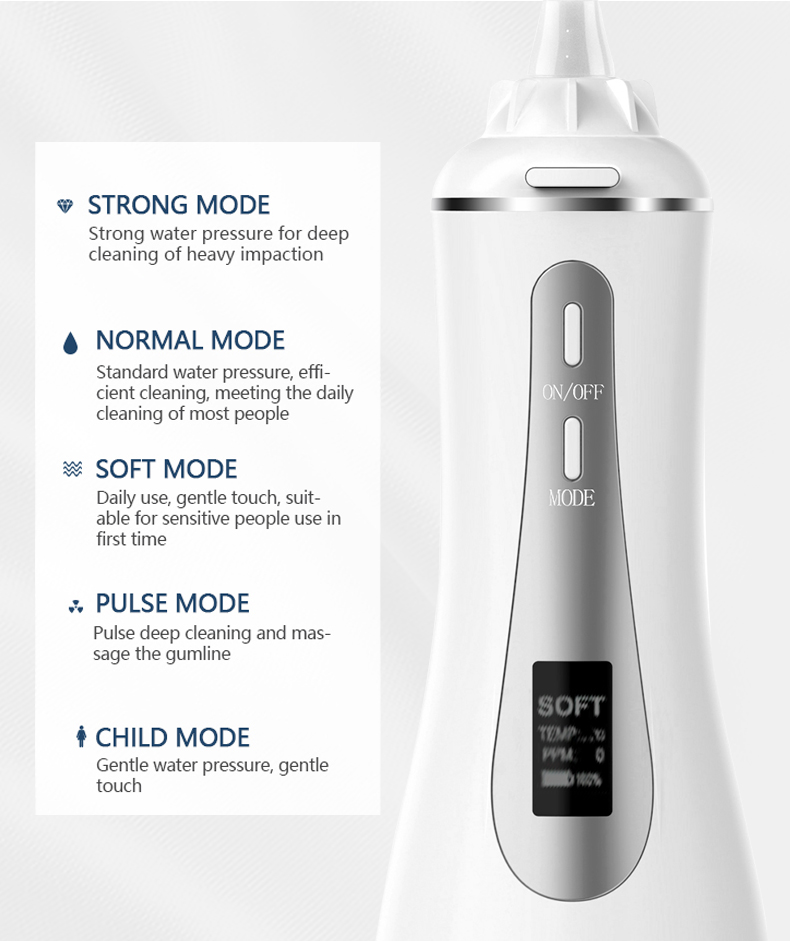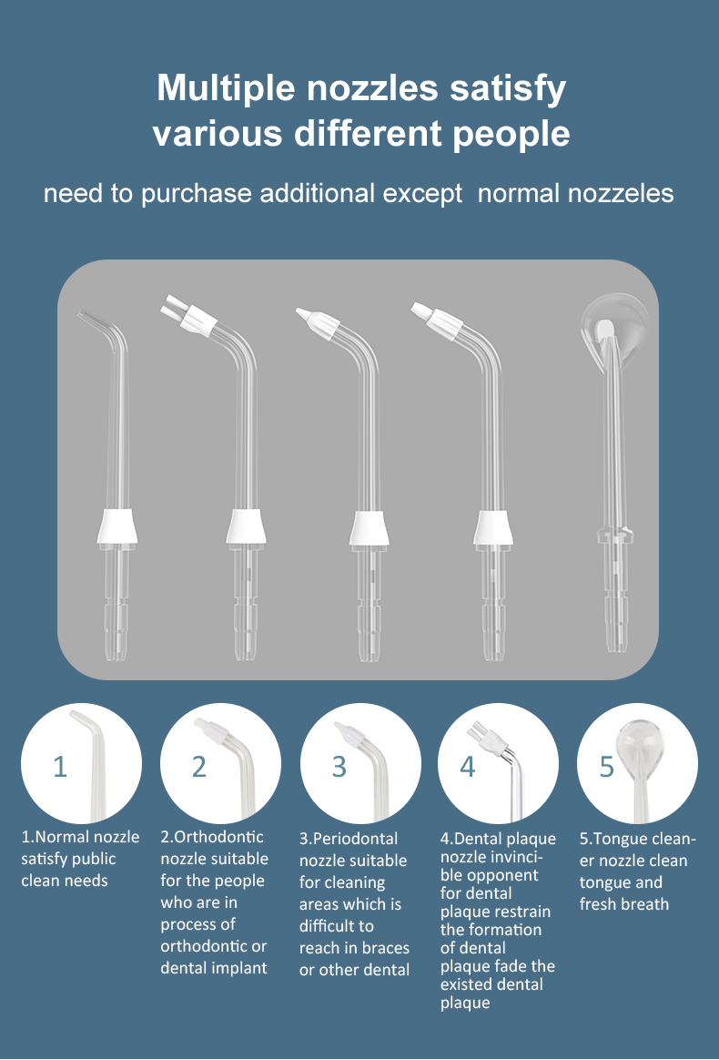 Profesionalno ocijenjen od strane američkog stomatološkog tima, naš konac pruža pet praktičnih načina rada koji zadovoljavaju različite potrebe 99% različitih starosnih grupa, istovremeno osiguravajući optimalne performanse i životni vijek. Njegova ergonomska ručka i 6 izmjenjivih mlaznica osiguravaju udobno i svestrano iskustvo. To je promišljen poklon za rođendane, Božić, Dan zahvalnosti, Dan zaljubljenih, Dan oca ili brigu o oralnom zdravlju vaših najmilijih