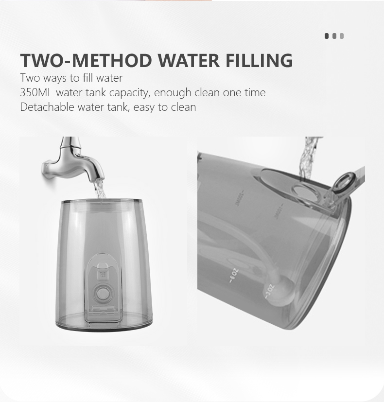 Ovaj vodeni zubni konac ima nadograđeni rezervoar za vodu od 350 ml, dvostruko veći od ostalih starih modela, eliminišući potrebu za čestim dopunama i čineći vaše oralno čišćenje praktičnijim i efikasnijim